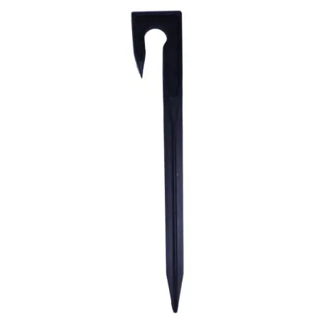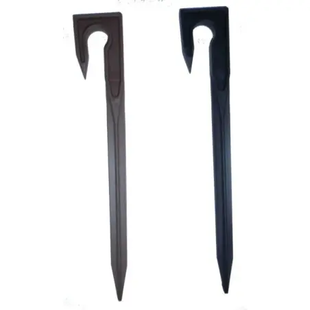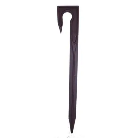 Estaca guía para la fijación al suelo de la tubería de riego por goteo pudiéndola mantener recta en los tramos deseados o guiar la tubería dando le forma en tu instalación